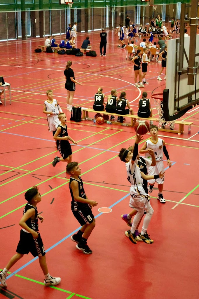 Mit der Zeit nahmen die Jungs den Kampf dann besser an und setzten ihrerseits erste, offensive Duftmarken, hatten aber den ein oder anderen Aussetzer/Turnover zuviel und besonders aus den eigenen Einwürfen heraus kam es zu oft zu schlecht vorbereiteten Pässen, die leichte Beute für die hellwachen Recklinghausener wurden. Am Ende eine vermeidbare Niederlage, die aber Zeugnis davon ablegte, dass wir auf dem Niveau absolut mithalten können. Im zweiten Spiel wartete nun mit Bayer Leverkusen der absolute Hochkaräter im Teilnehmerfeld.......